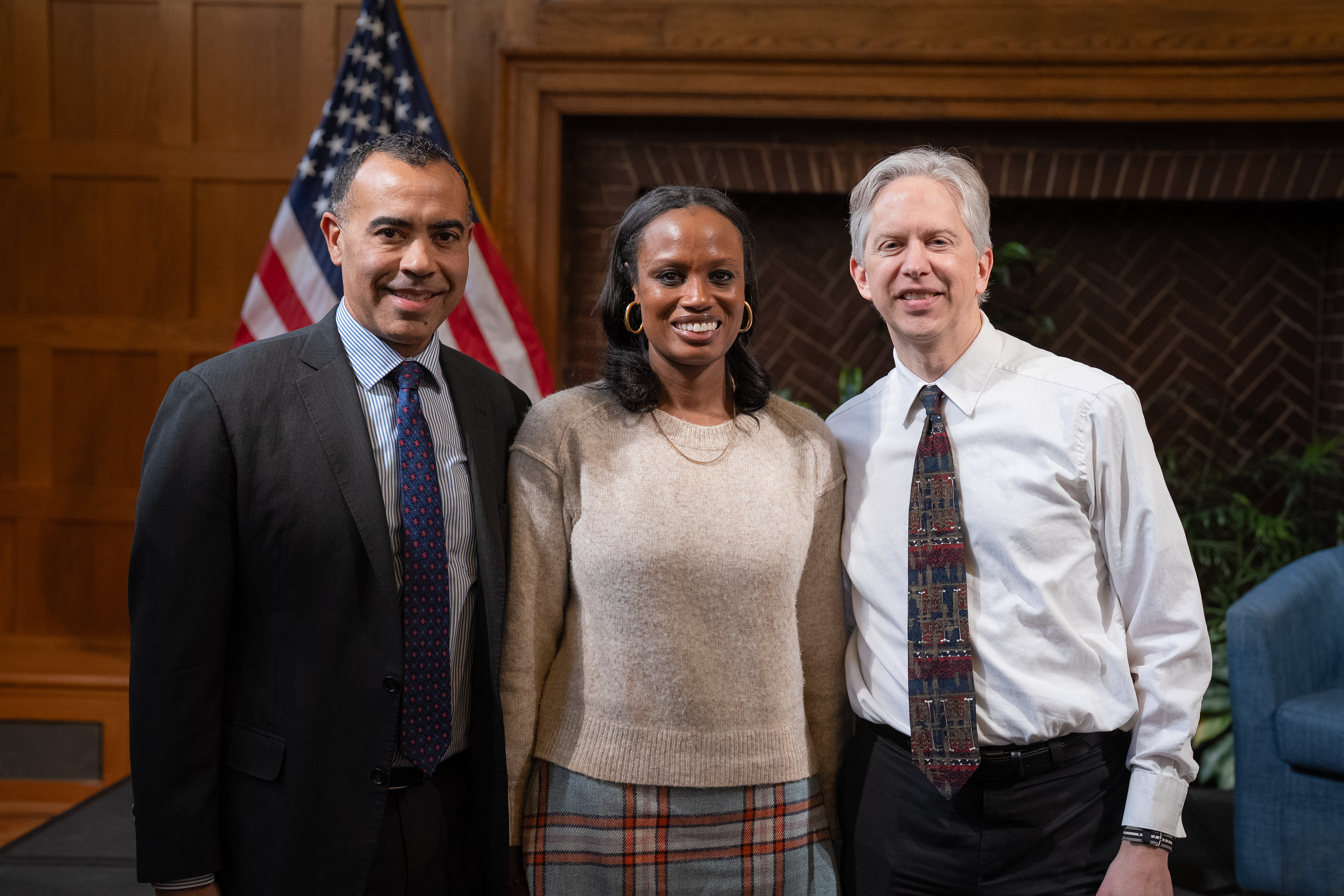 Batten School Dean Ian Solomon, Shuwanza Goff, and Craig Volden (from left to right).